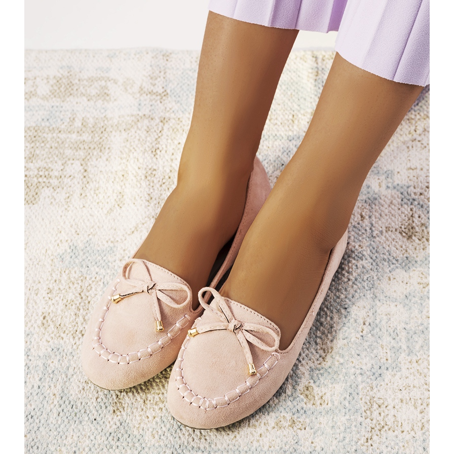 Entdecken Sie den neuesten Trend bei Damenschuhen – rosafarbene Santoro-Mokassins! Diese äußerst stilvollen und bequemen Schuhe sind eine perfekte Kombination aus modischem Design und Tragekomfort. Sie sind aus weichem, ökologischem Wildleder gefertigt, passen sich perfekt der Fußform an und sorgen den ganzen Tag über für optimalen Komfort.
