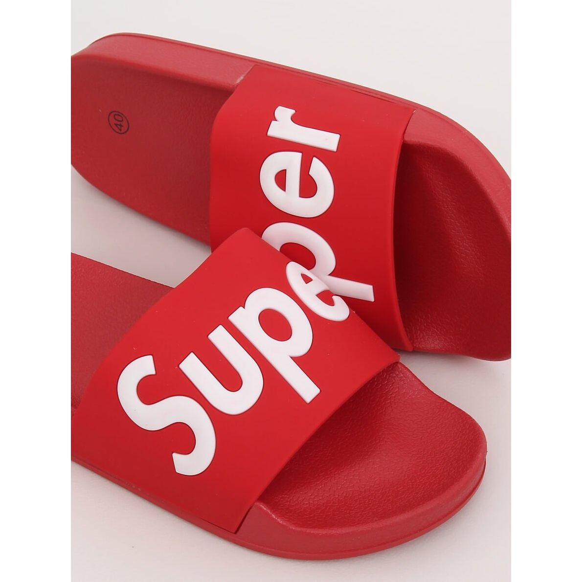 Entdecken Sie die Freude und den Komfort, die CK110 Red Damen-zehenstegsandalen mit sich bringen! Diese stilvollen zehenstegsandalen sind die perfekte Wahl für Frauen, die Wert auf modisches Aussehen und Komfort legen. Ihre intensive rote Farbe zieht die Blicke auf sich und der große „SUPER“-Schriftzug verleiht ihnen einen einzigartigen Charakter, der dem alltäglichen Styling etwas Verrücktes verleiht.