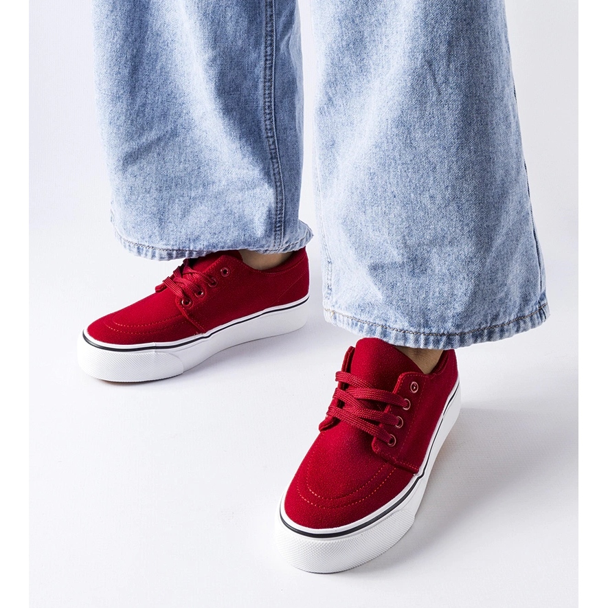 Klassische, niedrige Turnschuhe in einer intensiven roten Farbe sind ein Muss -Element der Sommergarderobe. Das HM206 -Modell aus ökologischem Wildleder -Leder kombiniert einen modischen Look mit Komfort - ideal für heiße Tage, Spaziergänge und tägliche Stilisierungen.