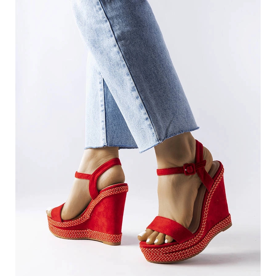 Entdecken Sie sommerliche Eleganz mit den roten Inala-Keilsandalen, die perfekte Wahl für jede modebewusste Frau. Das Modell FL-09 im Farbton Dk.Red ist eine klassische Kombination aus Sinnlichkeit und Komfort, die eine perfekte Ergänzung zu jedem Sommer-Styling darstellt.