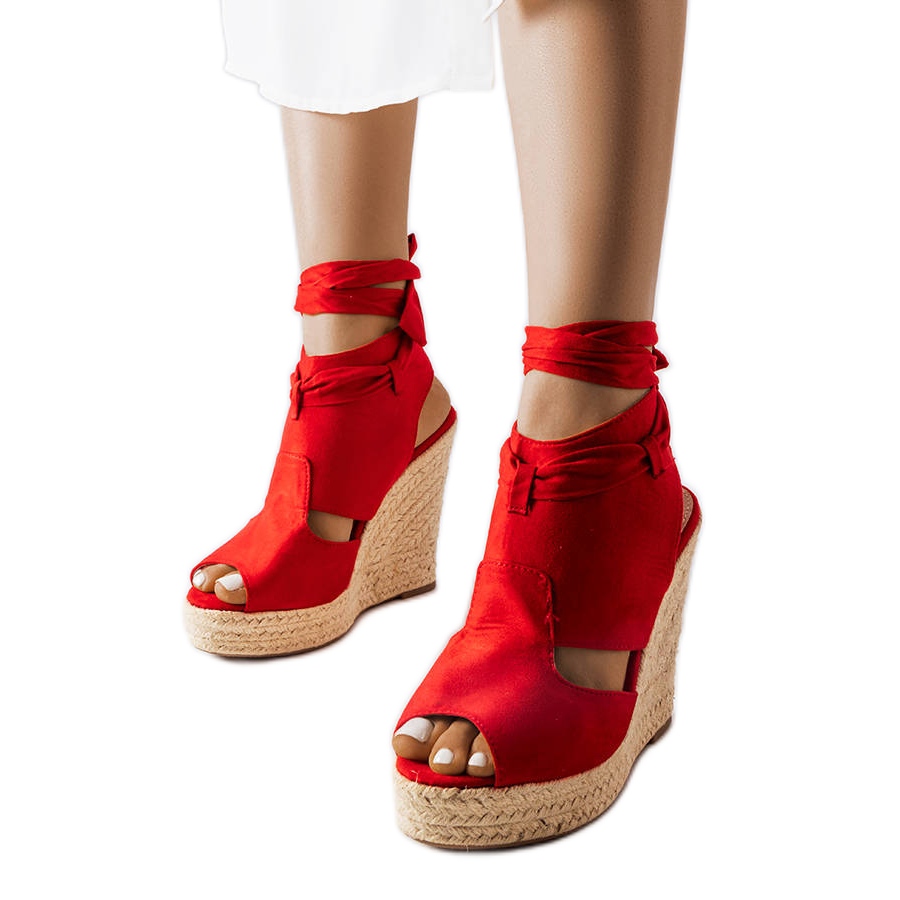 Rote Keilsandaletten zum Schnüren von Baader sind eine einzigartige Kombination aus Stil und Komfort, die perfekt in die Sommergarderobe jeder Frau passt. Die sanfte, intensive Farbe macht diese Schuhe zum Blickfang und verleiht dem Styling Ausdruckskraft und Eleganz.