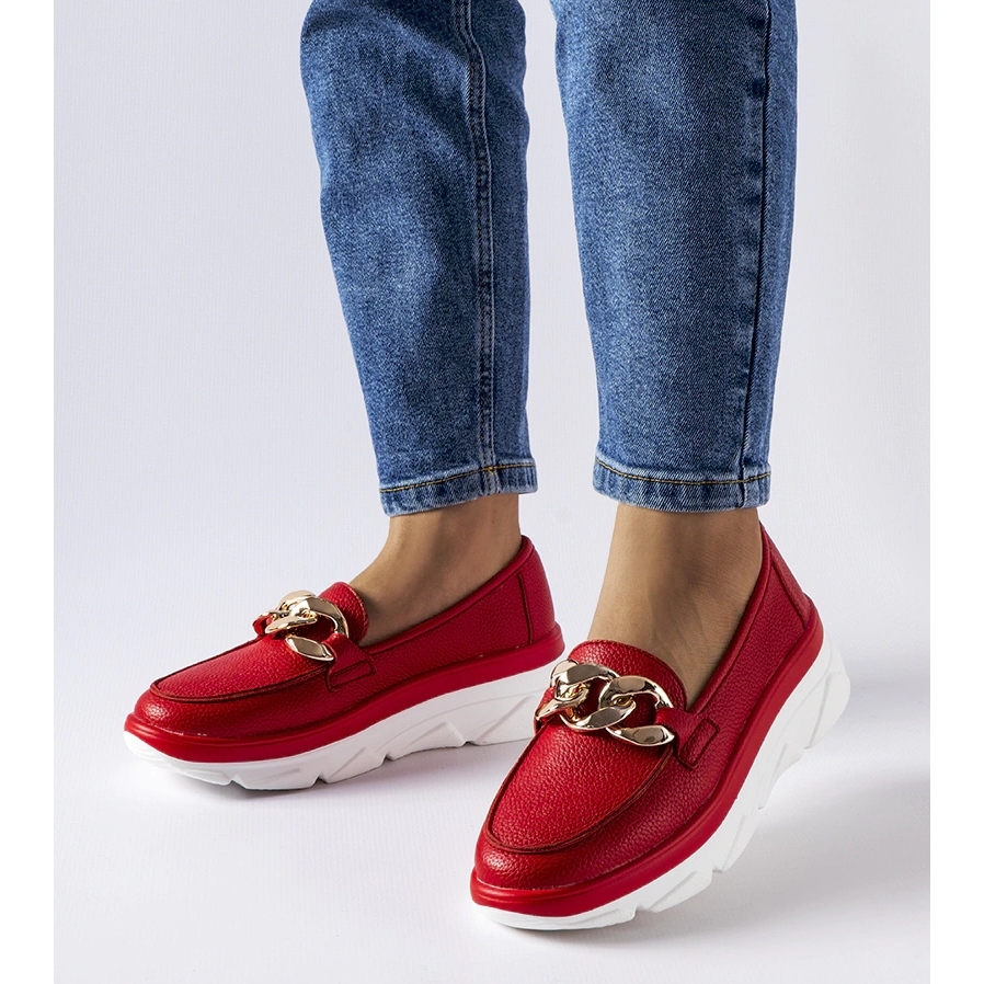 Vinceza Red Slates mit einer dekorativen Kette - eine Kombination aus modernem Design und Sommerkomfort. Durch die eingefügte Struktur wird sie schnell angezogen, und eine subtile Metallkette verleiht den Charakter und bricht die klassische Form von Mokassins. Leichte Konstruktion und atmungsaktive Materialien machen sie zu einer guten Wahl für heiße Tage - ideal für städtische Stilisierungen, Wochenendwanderungen oder Sommerausflüge.
