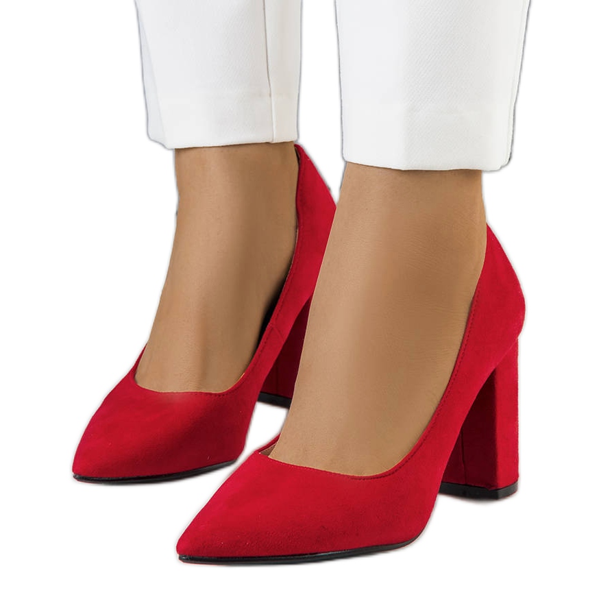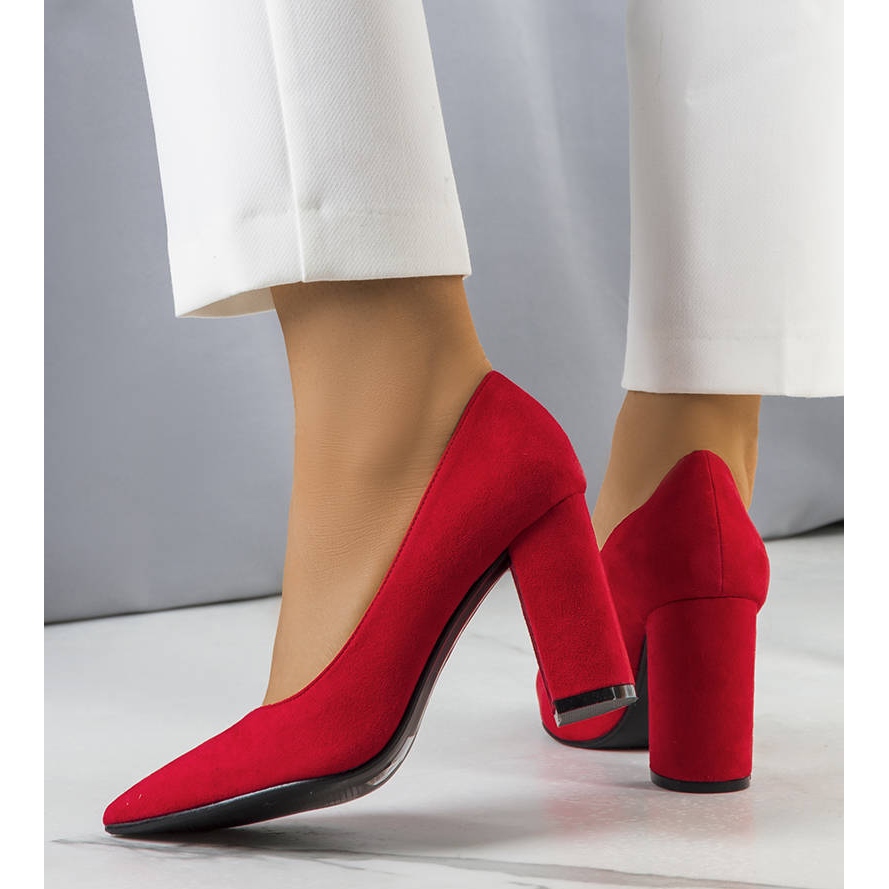 Rote Melvil-Pumps mit hohen Absätzen sind ein elegantes Accessoire, das jedes modische Styling perfekt ergänzt. Dank der spitzen Spitze verlängern sie die Beine optisch und lassen die Figur schlanker wirken. Sie bestehen aus hochwertigem ökologischem Wildleder und bieten maximalen Tragekomfort, auch an einem langen Tag in High Heels.