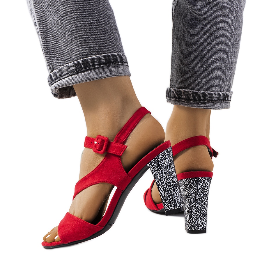 Inna marka Rote Sandalen an einem Murdock-Pfosten