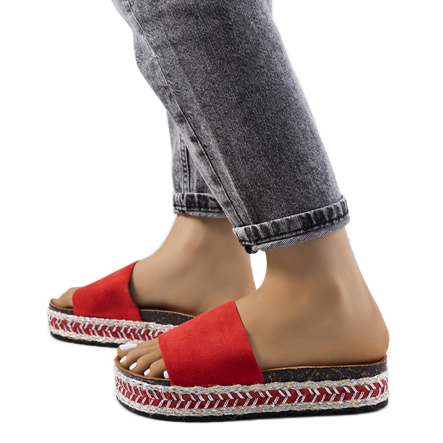 Bonython rote zehenstegsandalen mit Korksohle sind die perfekte Wahl für jede modebewusste Frau, die im Sommer-Styling Stil mit Komfort verbinden möchte. Ihr Obermaterial aus Öko-Wildleder mit schönem Steppmuster ist nicht nur ein echter Hingucker, sondern sorgt auch für ein angenehmes Tragegefühl. Das hohe Plateau von 4 cm sorgt für zusätzliche Eleganz und macht die zehenstegsandalen zu einer perfekten Wahl für den täglichen Gebrauch.