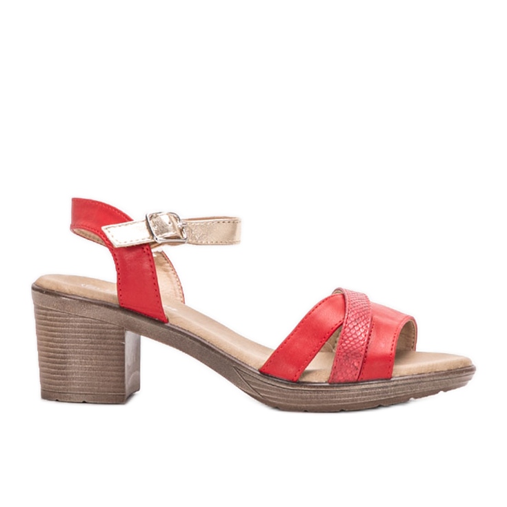 Details wie eine runde Spitze und ein Schnallenverschluss verleihen Eleganz und machen sie universell – sie passen sowohl zu Kleidern als auch zu Shorts. Die rote Farbe kombiniert mit goldenen Akzenten verleiht ihnen einen einzigartigen Charakter. Die Sohle aus strapazierfähigem braunem Kunststoff sorgt für Stabilität und Komfort beim Gehen.
