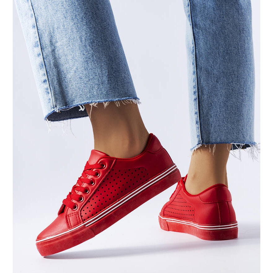 Es lohnt sich, auf die dezente Nummerierung zu achten – für eine perfekte Passform empfehlen wir, eine größere Größe zu wählen. Die Sneaker sind in den Größen 36-41 erhältlich, sodass jede Frau etwas für sich findet. Die rote Farbe der Schuhe und der Sohle verleiht ihnen einen frischen, modischen Charakter und durch ihre Universalität passen sie zu vielen Stilen.