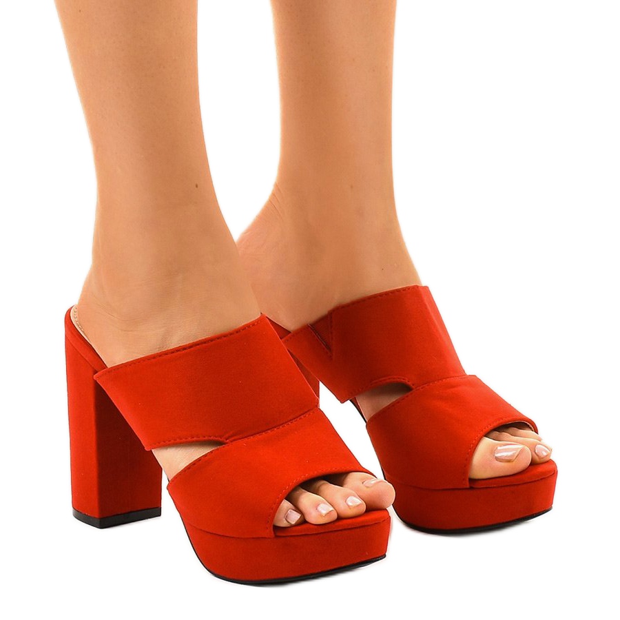 Hier ist die perfekte Wahl für Frauen, die ihrem Stil ein wenig Eleganz mit einem Hauch Avantgarde verleihen möchten – rote Wildleder-Pantoletten 9R55 mit hohen Absätzen. Diese auffälligen zehenstegsandalen zeichnen sich durch eine intensive Farbe aus, die ins Auge fällt, und dezente Ausschnitte, die das moderne Design betonen.