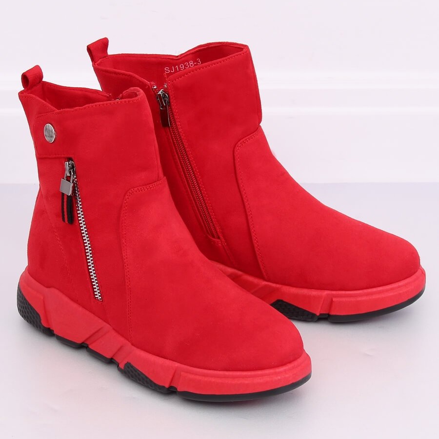 Suchen Sie modische und bequeme Schuhe, die Ihren Stil unterstreichen? Damen-Stiefeletten im sportlichen Stil SJ1938 Red von Inna sind die perfekte Wahl für Sie! Diese einzigartigen Stiefel fallen durch ihre intensive rote Farbe auf, die jedem Styling Energie verleiht.