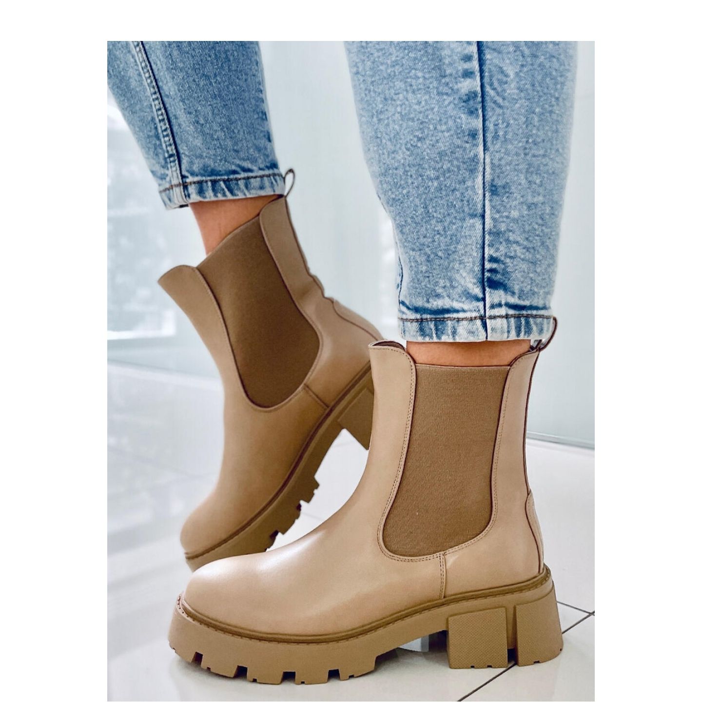 Details: Rumer Khaki High-Top-Chelsea-Stiefel – Inello beige