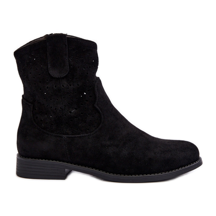 Details: S.barski HY66-135 Durchbrochene Damenstiefel mit flachem Absatz, Schwarz