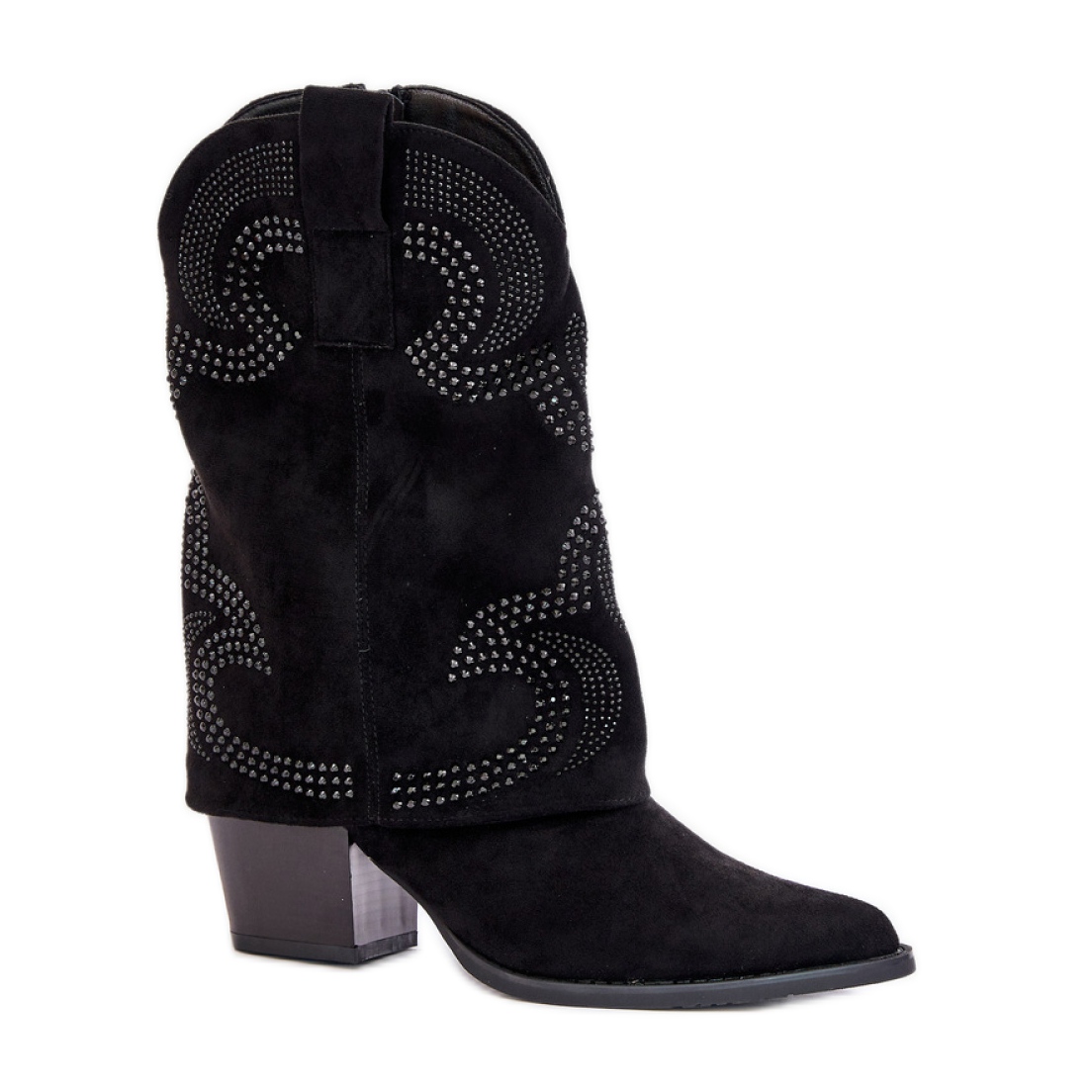 Wir präsentieren dekorierte Stiefel Frauen Cowboy -Stiefel S. Barski Black in einer eleganten schwarzen Farbe - eine perfekte Wahl für jeden Modeliebhaber! Diese modischen Cowboy -Stiefel mit halbkalfischen Cowboy werden durch ein originales Obermaterial mit Jets ausgewiesen, was ihnen einen einzigartigen Charakter verleiht und sie zu einem interessanten Akzent für jegliche Stilisierung bringt.