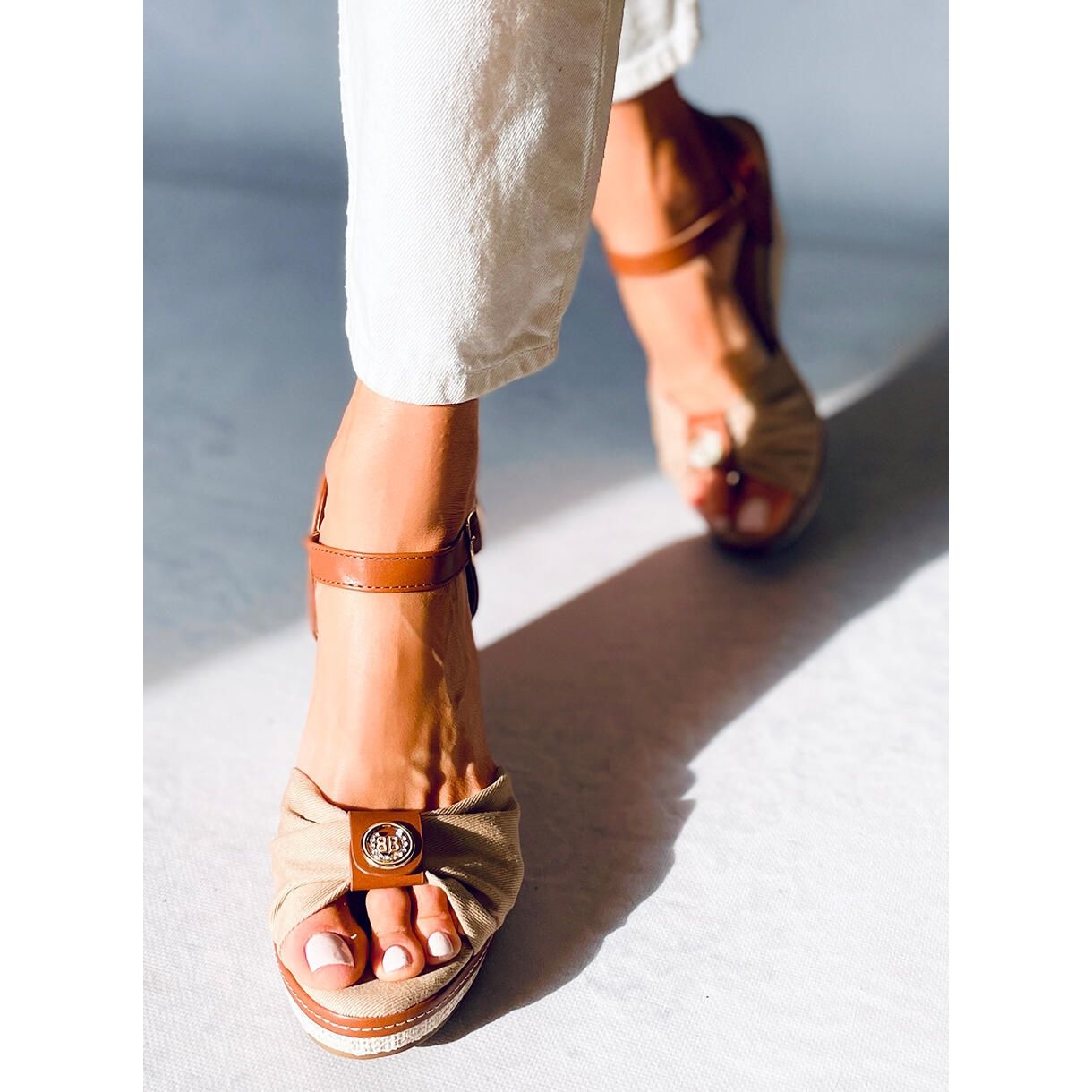 Inna marka Sandalen auf dem Keil Leyla Khaki beige braun