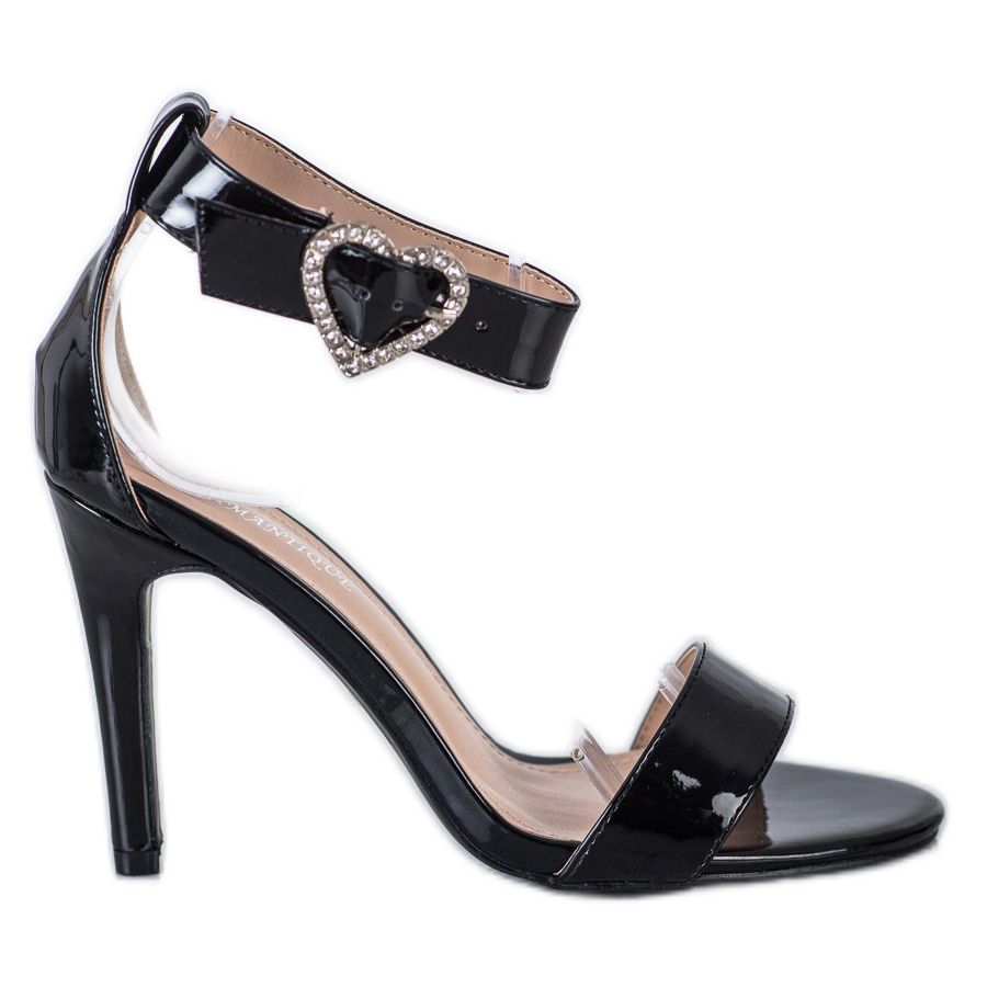 Die aus hochwertigem Lederimitat gefertigten Sandalen haben einen dezenten Glanz und ihr elegantes Design wird durch eine dekorative Applikation aus Zirkonen ergänzt. Die dunkle Farbe macht sie universell und passt zu vielen Stilen, sowohl klassisch als auch modisch. Die synthetische Sohle mit glatter Struktur sorgt für Stabilität bei jedem Schritt und die ökologische Innensohle garantiert Tragekomfort.