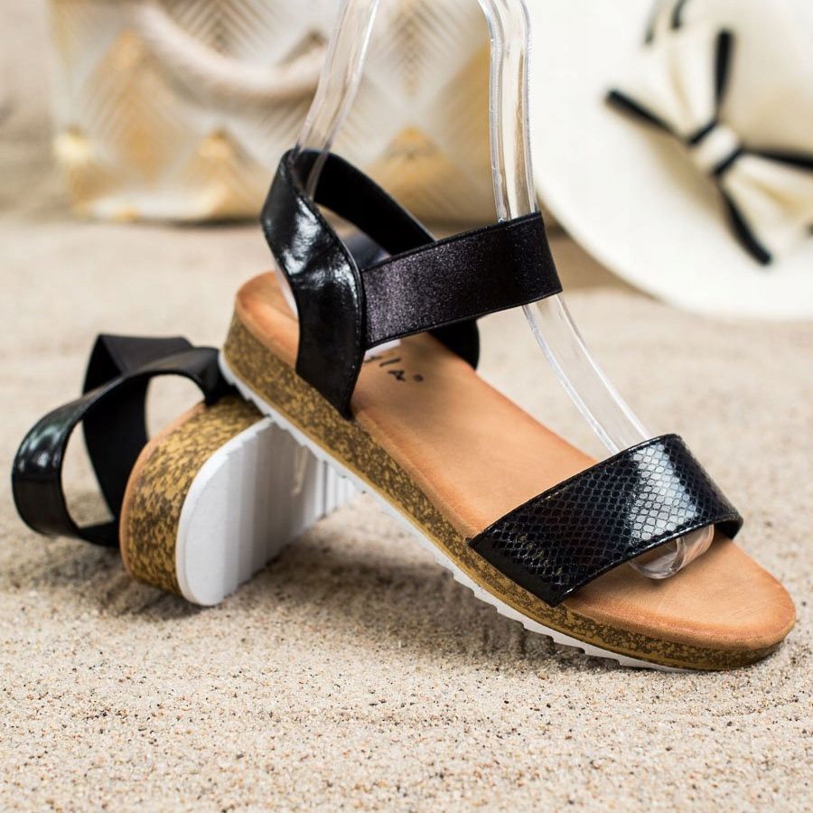 Kayla-Sandalen zeichnen sich durch eine Sohle mit Kunststoffprofil aus, die Stabilität und Traktion auf verschiedenen Untergründen garantiert. Der Slip-On-Verschluss ermöglicht ein schnelles und problemloses An- und Ausziehen der Schuhe. Dank des 3 cm hohen Plateaus sehen die Sandalen nicht nur modisch aus, sondern bieten auch zusätzlichen Komfort.