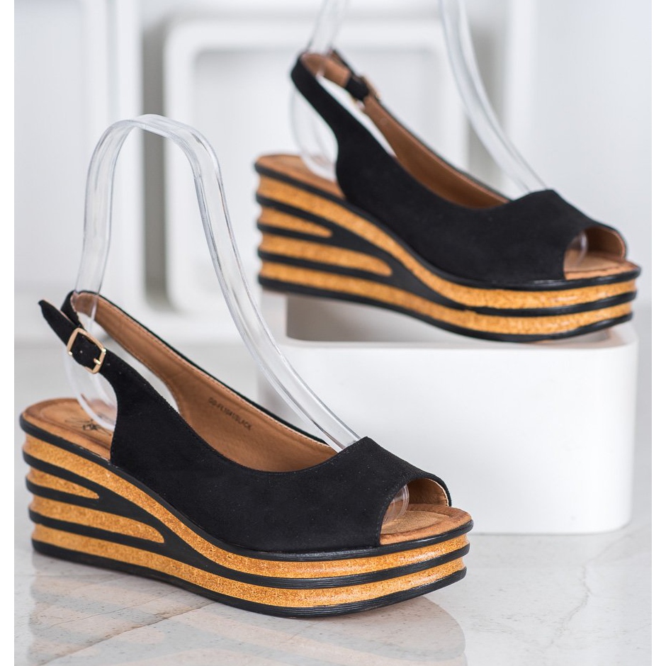 Entdecken Sie Eleganz und Komfort mit den schwarzen Damensandalen von Goodin, die die perfekte Wahl für Frühlings- und Sommertage sind. Aus hochwertigem Material im Wildlederimitat gefertigt, vereinen diese Sandalen modisches Design und Funktionalität. Dank zweifarbiger 7,5 cm hoher Wedges, die die Beine optisch verlängern, wird jeder Schritt voller Stil und Selbstbewusstsein sein.