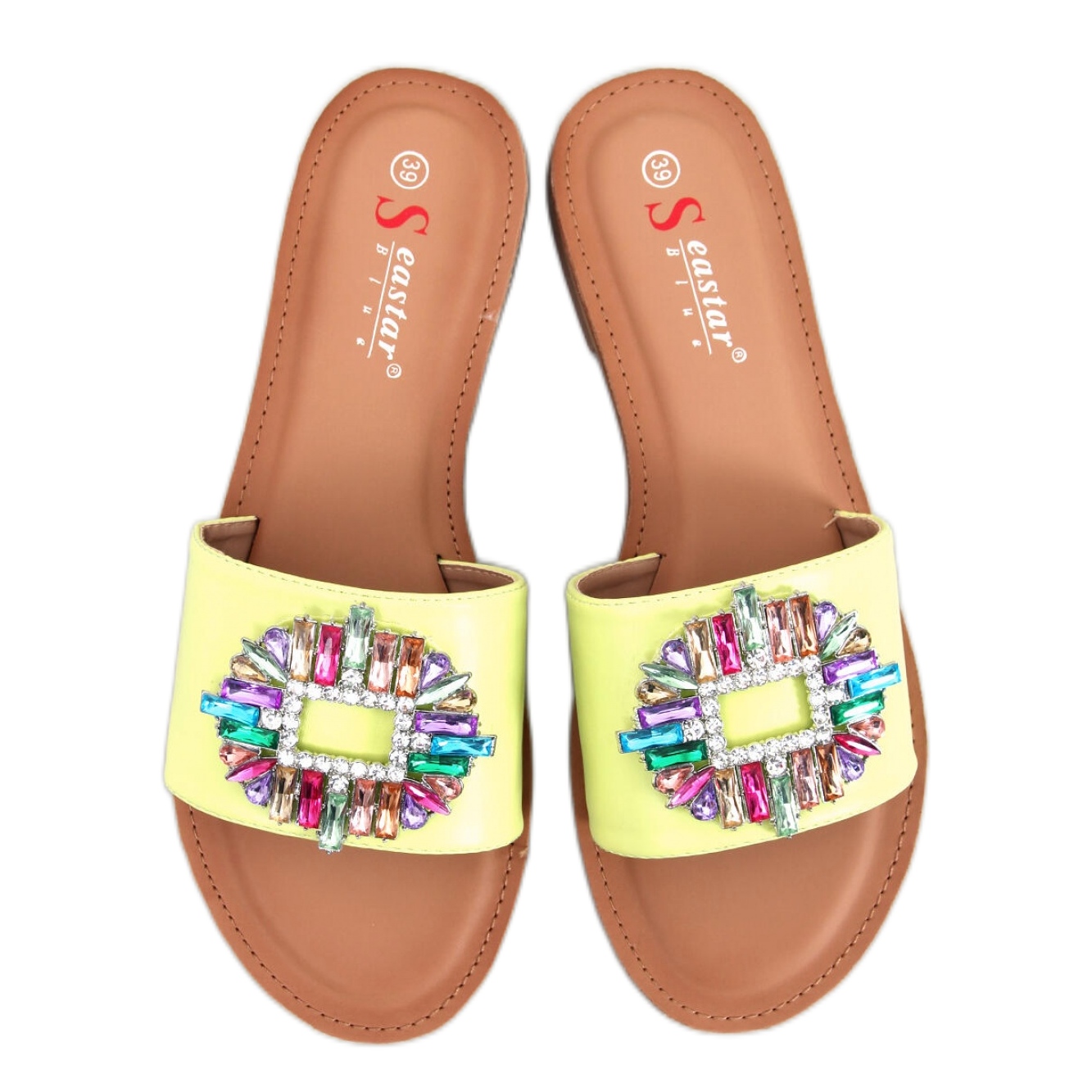Führen Sie ein wenig Farbe ein und scheinen Sie in Ihre Garderobe, dank der Sandalen von Lowell Green -Klappen der Marke Inello. Diese stilvollen Hausschuhe für Frauen mit flachem Sohle kombinieren Komfort und einzigartiges Design. Ein breites Riemen, der mit farbenfrohen, glänzenden Steinen dekoriert ist, fällt auf und lässt jede Stilisierung einen einzigartigen Charakter annehmen.
