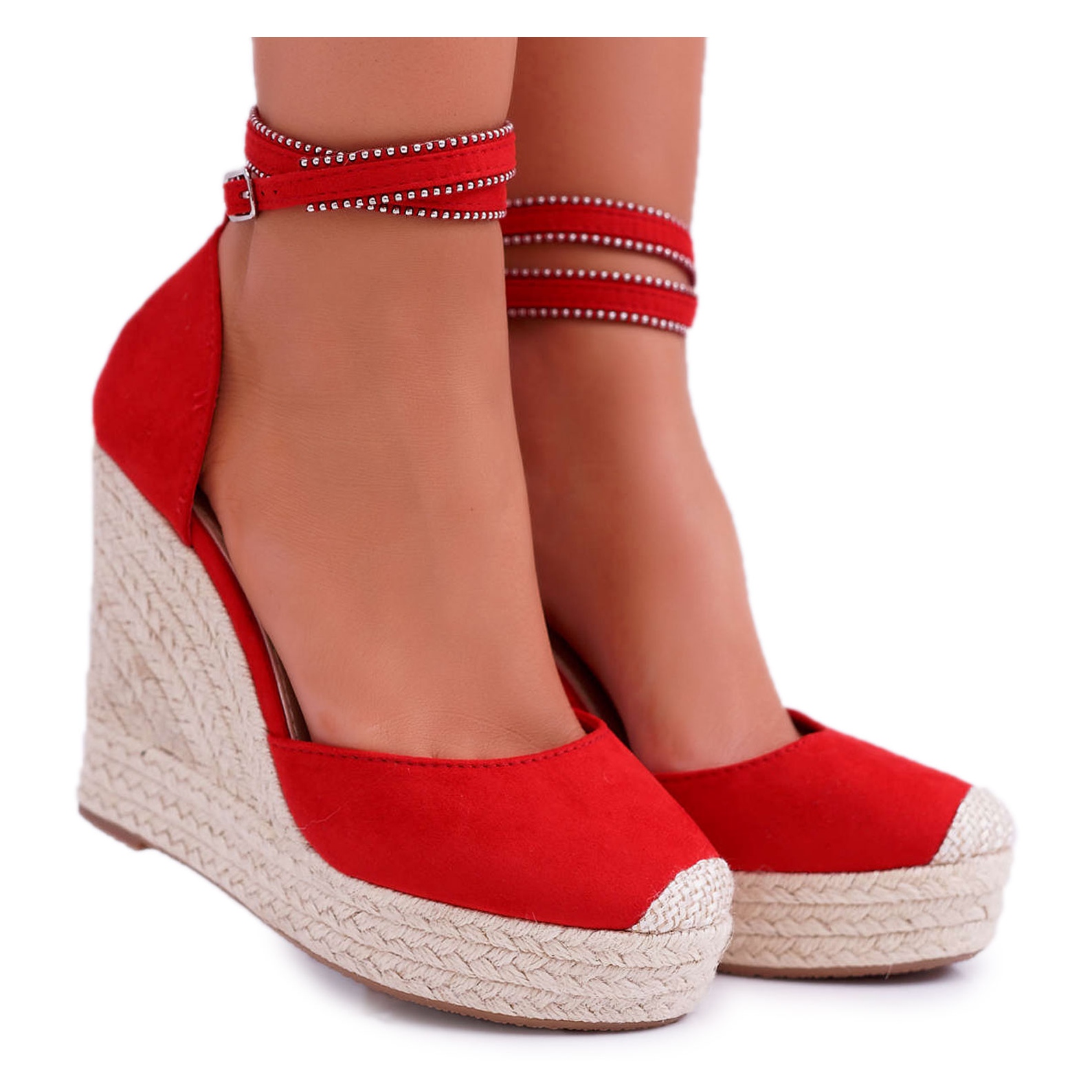Die Sandalen wurden sorgfältig entworfen, um Komfort zu gewährleisten, und verfügen über eine weiche Innensohle aus Faux-Wildleder. Hochwertiges Obermaterial aus ökologischem Wildleder verleiht ihnen einen luxuriösen Charakter und der stylische Riemen, der um den Knöchel gebunden wird, garantiert eine perfekte Passform und zusätzlichen Halt.