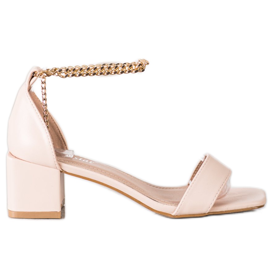 Entdecken Sie die einzigartigen Seastar-Sandalen mit dekorativer Kette, die jede Frau begeistern werden, die jeden Tag und zu besonderen Anlässen Eleganz und Komfort sucht. In der Farbe Beige mit goldenen Elementen passen diese klassischen Sandalen perfekt zu den Trends der Frühlings-/Sommersaison und verleihen jedem Styling Charme.