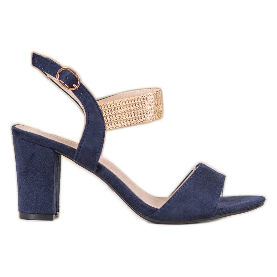 Entdecken Sie Eleganz und Stil mit Filippo Damensandalen mit goldenem Riemen in Dunkelblau mit gelben Akzenten. Diese einzigartigen Schuhe sind die perfekte Wahl für Abende und Feiern. Sie bestehen aus ökologischem Wildleder und sorgen für Tragekomfort und einen modischen Look. Offene Zehen und ein Absatz betonen die weibliche Attraktivität und ein breiter Riemen auf der Rückseite verleiht Charakter.
