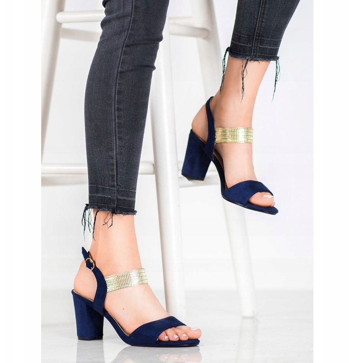 Die Sandalen sind auf einem stabilen 8-Zentimeter-Blockabsatz gesetzt, der für eine elegante Wirkung sorgt und gleichzeitig Tragekomfort garantiert. Ein zusätzlicher Riemen mit Schnallenverschluss um den Knöchel sorgt nicht nur für eine perfekte Passform, sondern bringt auch wohlgeformte Beine zur Geltung.