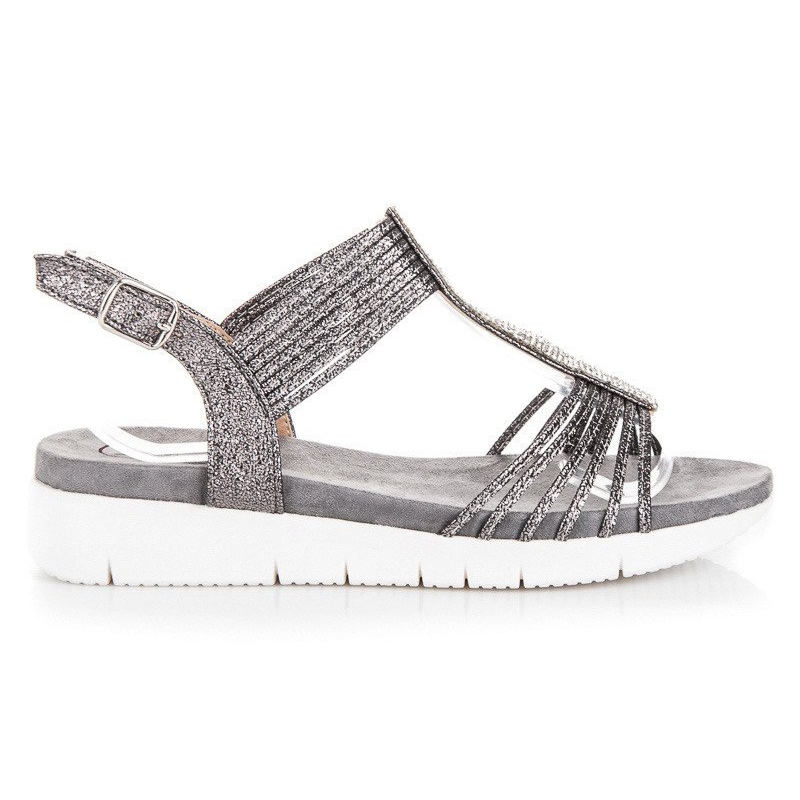 Wir präsentieren elegante graue Sandalen der Marke Kylie, die die Aufmerksamkeit jedes Modeliebhabers auf sich ziehen werden. Diese außergewöhnlichen Schuhe sind mit einzigartigen Kristallen verziert, die ihnen einen originellen Charakter verleihen und sie zu einer perfekten Ergänzung zu jedem Styling machen. Durch ihre universelle graue Farbe eignen sie sich perfekt für verschiedene Outfits – sowohl für den Alltag als auch für den Abend.