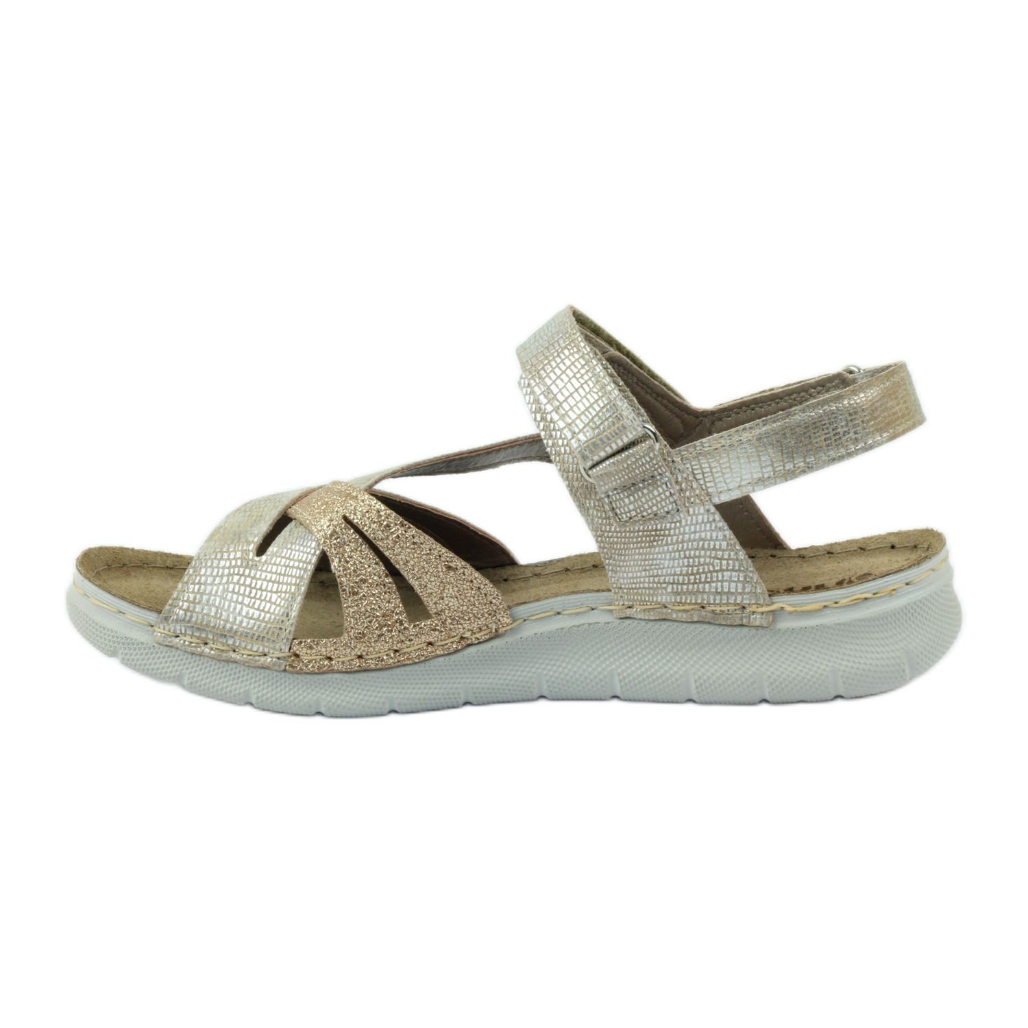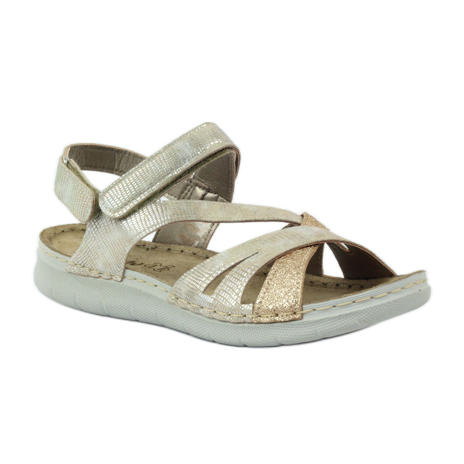 Eine bequeme Innensohle aus Naturleder sorgt für hervorragende Dämpfung und Tragekomfort den ganzen Tag. Ein flacher, 3 cm hoher Absatz verleiht den Sandalen eine enorme Stabilität, was besonders bei Sommerspaziergängen wichtig ist. Der interessante Schnitt und die fehlende Spitze verleihen ihnen einen modernen Charakter und der Klettverschluss ermöglicht ein einfaches Anziehen und Anpassen an den Fuß.