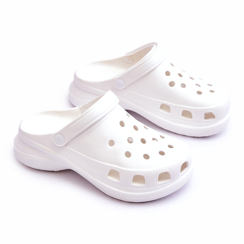 Weiße Katniss kroksy Foam zehenstegsandalen mit massiver Sohle sind eine stilvolle und praktische Wahl für Frauen, die Wert auf Komfort und Leichtigkeit bei jedem Schritt legen. Diese äußerst bequemen zehenstegsandalen bestehen aus hochwertigem Schaumstoffmaterial, das eine hervorragende Stoßdämpfung und Weichheit bei jedem Bodenkontakt garantiert. Dank der Verwendung dieses Materials sind die Schuhe äußerst leicht und bequem und der Fuß ermüdet auch nach vielen Stunden des Tragens nicht.
