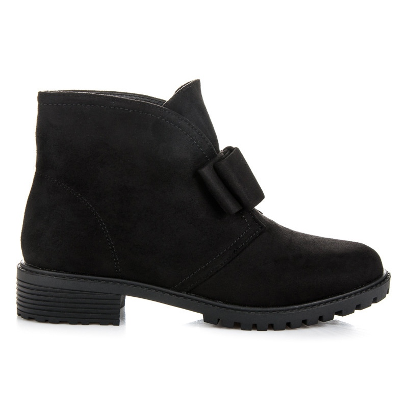 Slip-On-Stiefeletten mit Schleife in Schwarz vom Hersteller Bestelle sind ein ideales Angebot für Frauen, die sowohl Wert auf Komfort als auch auf modisches Aussehen legen. Diese eleganten Stiefeletten aus strapazierfähigem Öko-Wildleder passen zu jedem Outfit, von lässig bis formell.