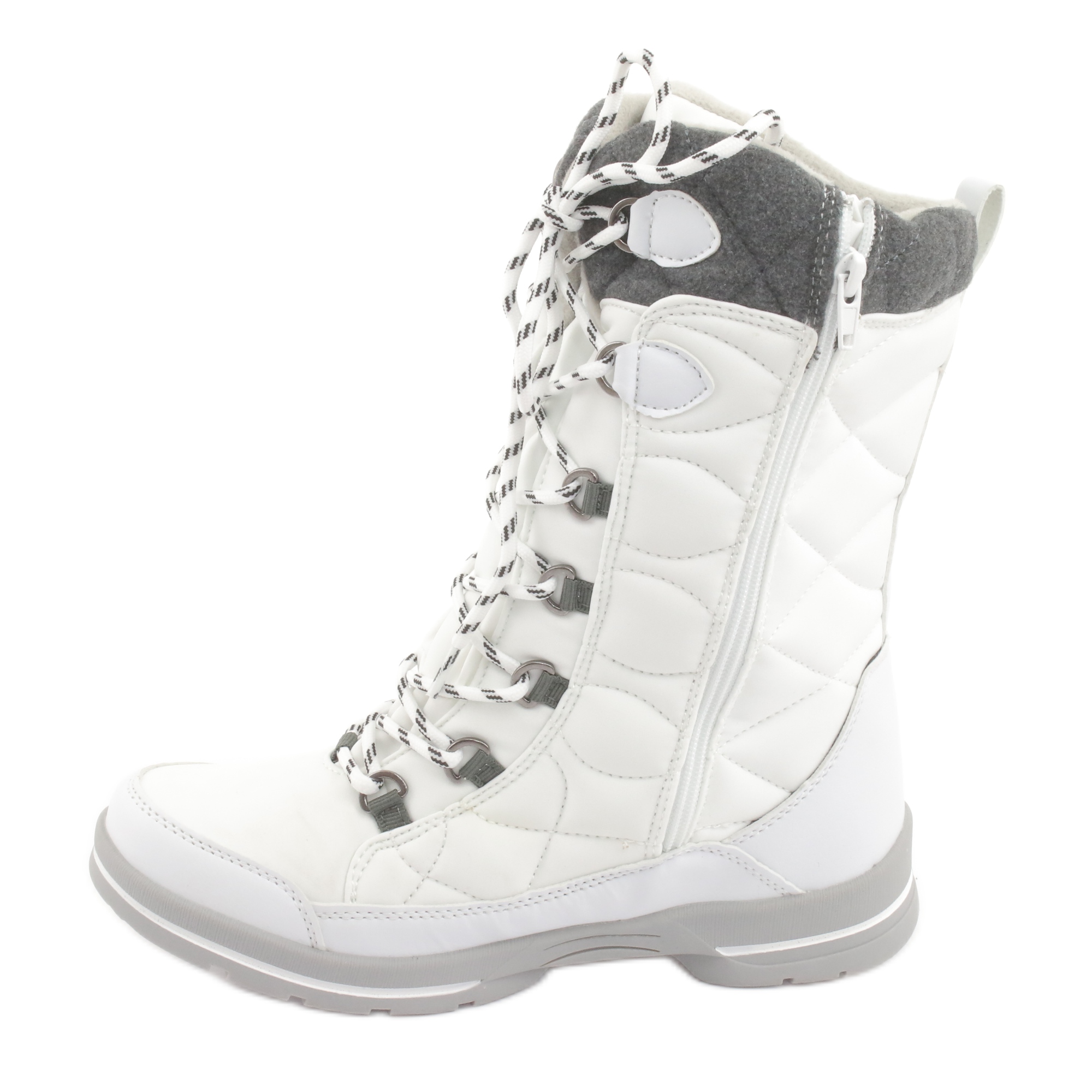 Die Schneestiefel American Club SN08 in Weiß und Grau sind eine ausgezeichnete Wahl für Frauen, die nicht nur Wert auf ein modisches Aussehen, sondern auch auf Komfort und Funktionalität unter schwierigen Winterbedingungen legen. Diese hohen Stiefel sind für maximalen Schutz vor Kälte und Feuchtigkeit konzipiert und eignen sich daher perfekt als Schuhwerk für verschneite Tage.