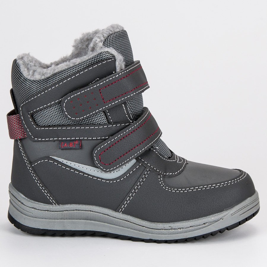 Arrigo Bello – Schneestiefel mit Klettverschluss in universellen grauen Farben, konzipiert für aktive Vorschulkinder. Die solide, profilierte Gummisohle sorgt für guten Halt auf rutschigem Untergrund und die versteifte Ferse stabilisiert den Fuß beim Spielen im Freien. Schuhe aus ökologischem Leder, innen mit weichem Schaffell isoliert – perfekt für kältere Tage.