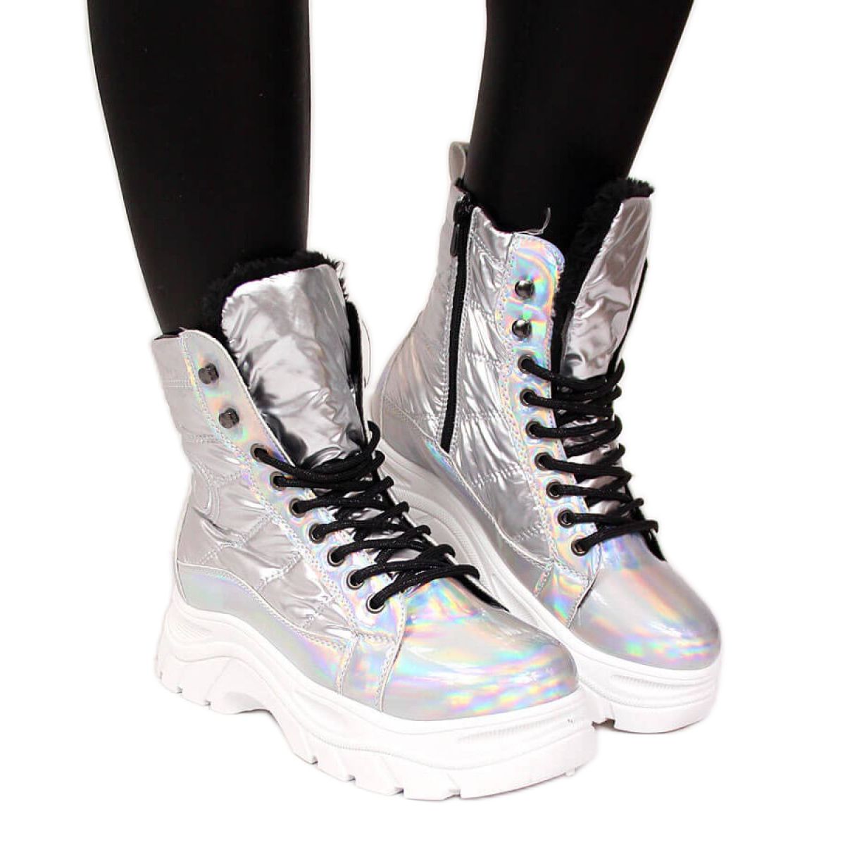 Vinceza Schneestiefel auf der Vinceza W JAN47B Silver Holo-Plattform silber-