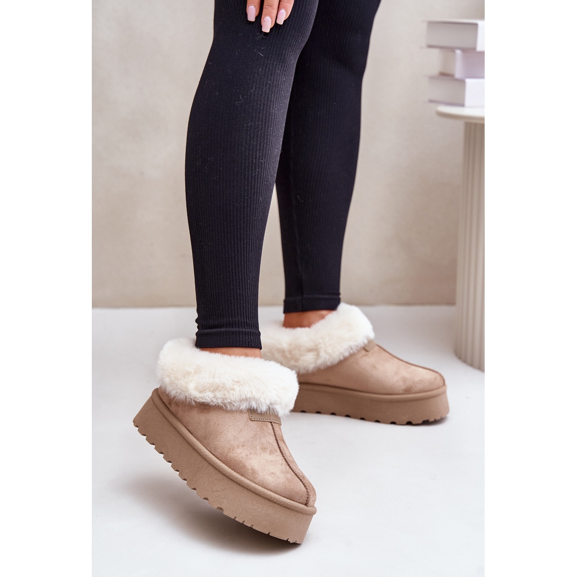 Inna marka Schneestiefel mit niedrigem Schaft und Fell auf der Plattform Eco Suede Dark Beige Neathoria