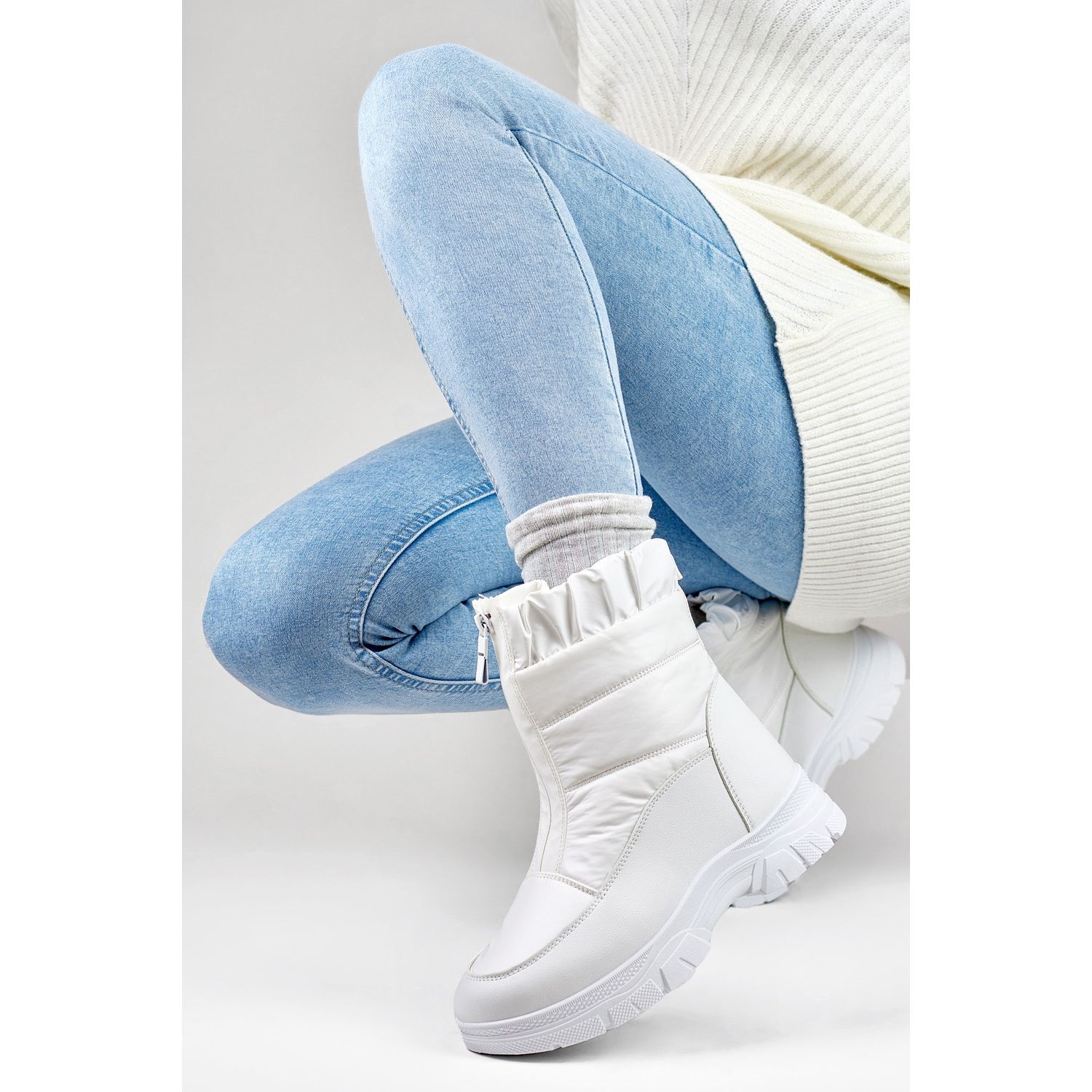 Warten Sie nicht mehr - diese weißen Schneestiefel sind ein Vorschlag für jede Frau, die einen modischen Look mit Komfort kombinieren möchte. Perfekt für Kombinationen mit Wintermänteln, Parks oder stilvollen Jacken und wird eine großartige Ergänzung zu jeder Winterstilisierung sein. Sie sind auch ideal als Geschenk, das in der Originalherstellerbox verpackt ist. Investieren Sie in Komfort und Stil - wählen Sie Primo -Schneestiefel!