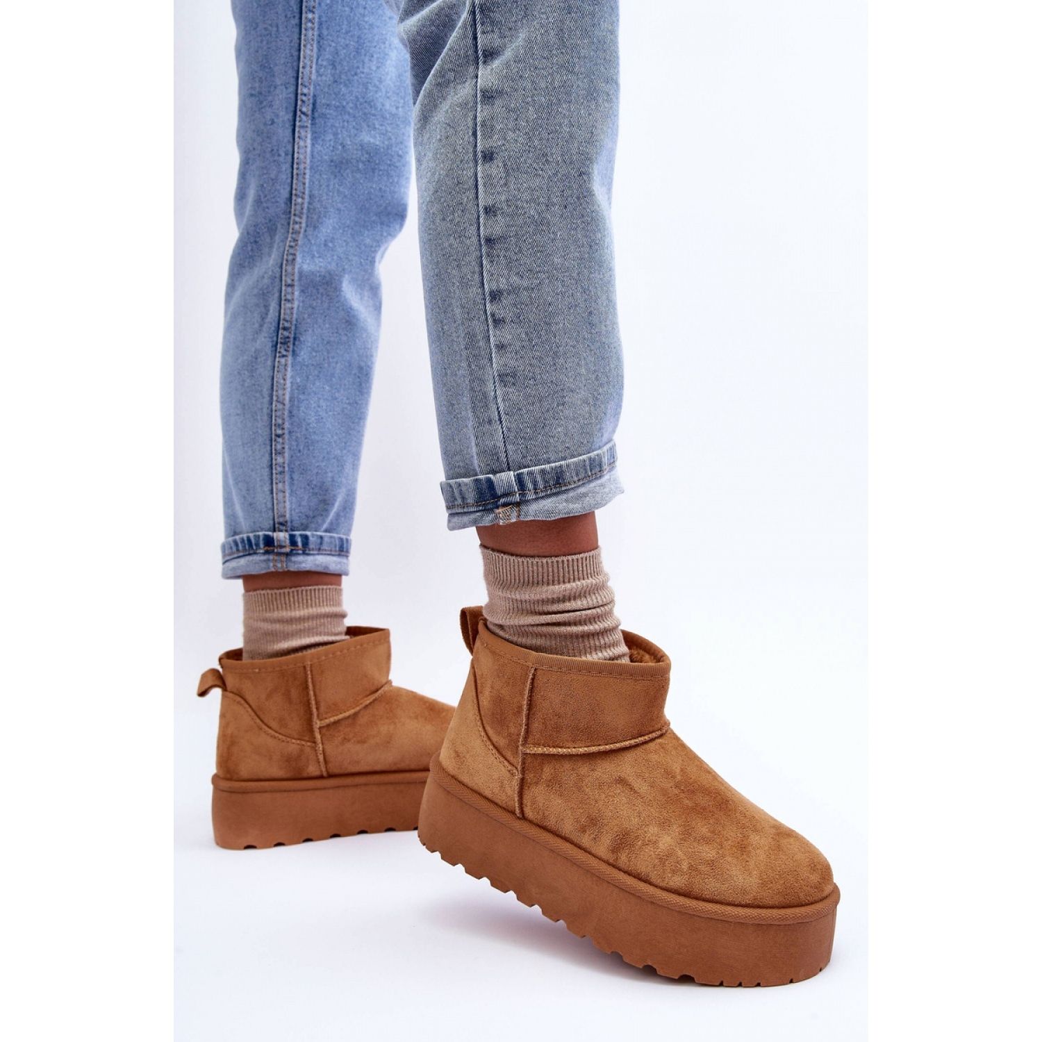 Das Innere der Schuhe wurde mit dickem, ökologischem Fell isoliert, das selbst an den kältesten Tagen angenehme Wärme sorgt. Das 9 cm hohe Obermaterial schützt die Füße effektiv vor der Kälte, und die massive Plattform mit einer Höhe von 5 cm isoliert perfekt vom Boden und bietet zusätzlichen Komfort beim Tragen.