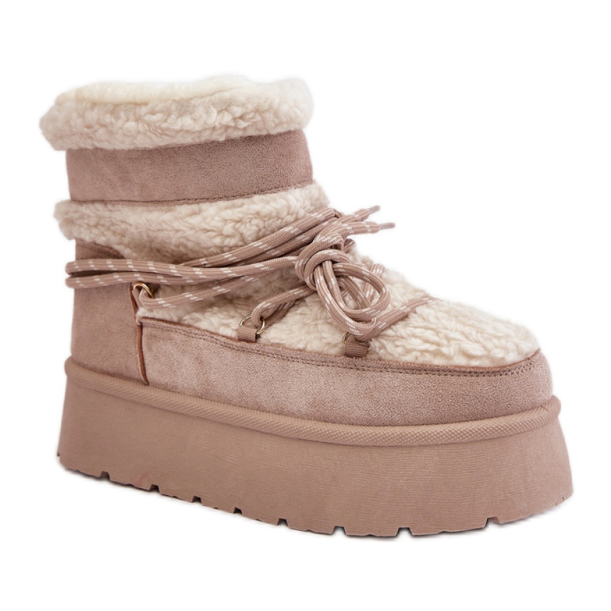 Ein unverwechselbares Merkmal von Schneestiefeln ist ihre modische Frontbindung, die nicht nur Charakter verleiht, sondern auch eine präzise Anpassung an den Fuß ermöglicht. Isoliertes Innenraum aus weichem Fell garantiert, dass Ihre Füße selbst bei niedrigen Temperaturen immer warm sind. Dank der erhöhten oberen 16 cm hohen und einer Plattform von 5 cm hoch schützen diese Schneestiefel perfekt vor Erkältung und Feuchtigkeit und verleihen einige Zentimeter zu Ihrer Höhe.