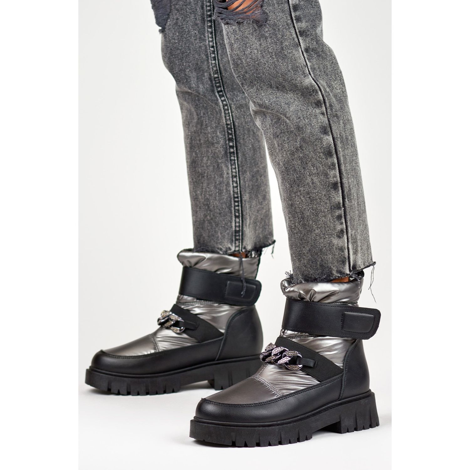 Die Höhe der oberen 16 cm garantiert die solide Unterstützung für den Knöchel und schützt sie vor Kälte, und eine 4 -cm -High Heel fügt Eleganz hinzu, ohne die Stabilität zu verlieren. Mit Klettverschluss können Sie schnell anziehen und abnehmen, was an den Wintermorgen äußerst praktisch ist. Die runde Nase verleiht den Schuhen einen modernen Charakter, dank der sie perfekt in verschiedene Stilisierungen einfügen.