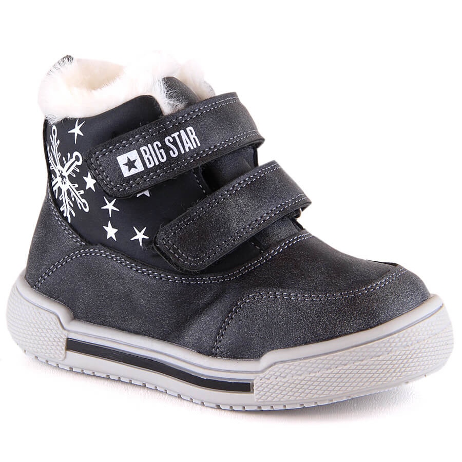 Big Star KK374191 Kinderschnee -Stiefel - warme, bequeme und praktische Winterschuhe für Mädchen. Die klassische schwarze Farbe mit den Ergänzungen von Grau verleiht ihnen einen universellen und stilvollen Look, der gut zu Winterjacken und Overalls passt.