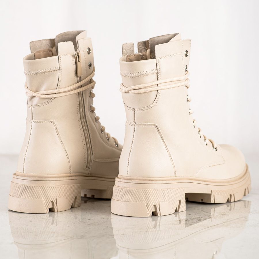 Dank der runden Spitze und der mittleren Breite des Obermaterials (26 cm) lassen sich diese Schuhe problemlos an unterschiedliche Füße anpassen. Die Reißverschluss- und Schnürelemente sorgen für zusätzliche Praktikabilität und ermöglichen eine schnelle und effiziente Anpassung. Das Ganze sieht außergewöhnlich elegant aus und die beige Farbe passt perfekt zu aktuellen Trends.