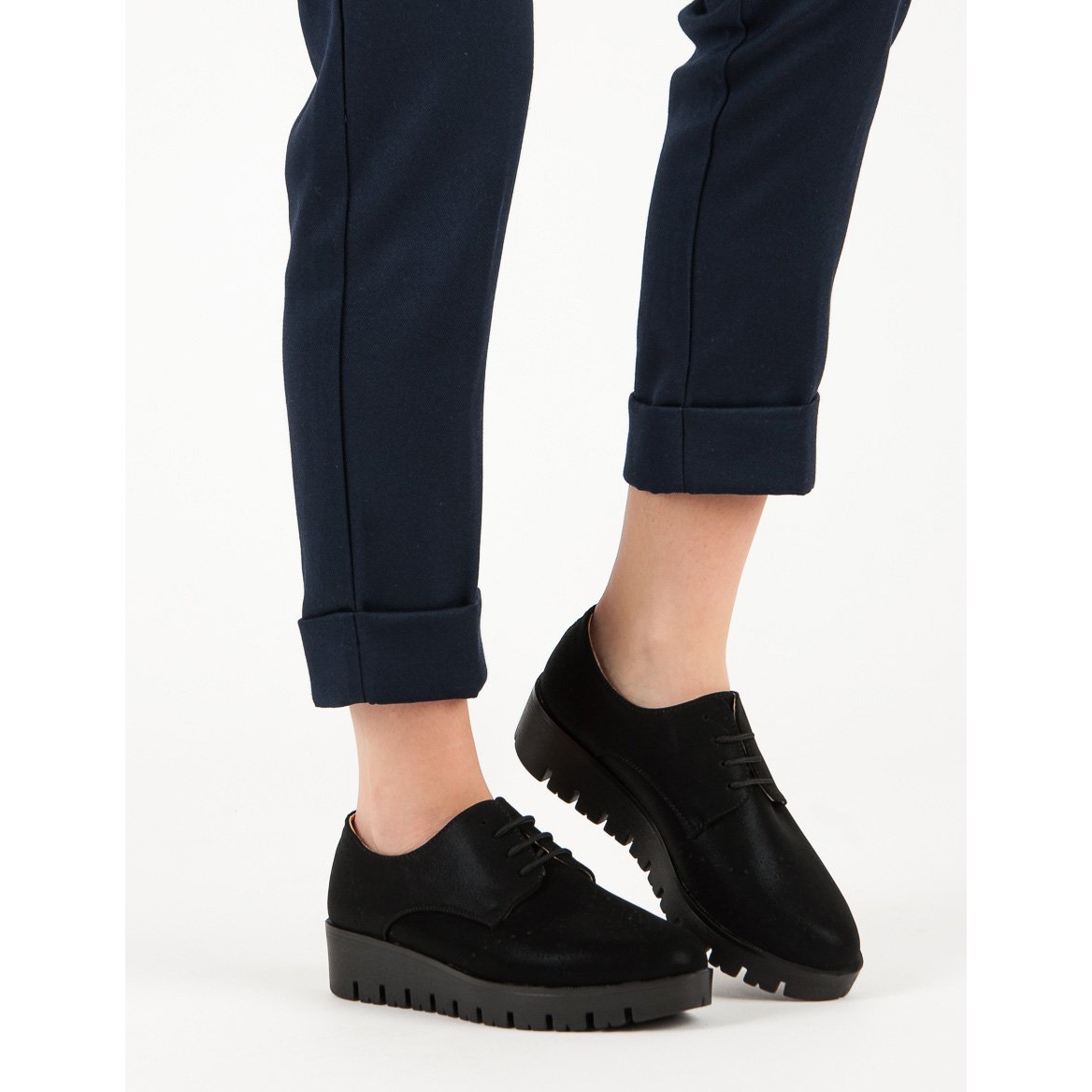 Das Innere der Schuhe ist mit einem Ledereinsatz versehen, der für ausreichende Belüftung und Tragekomfort den ganzen Tag über sorgt. Der Schnürverschluss ermöglicht eine perfekte Passform am Fuß, was sowohl für den Komfort als auch für die Ästhetik wichtig ist. Die runde Spitze verleiht Charme und die Absatzhöhe von 4 cm macht dieses Modell sowohl praktisch als auch stilvoll.
