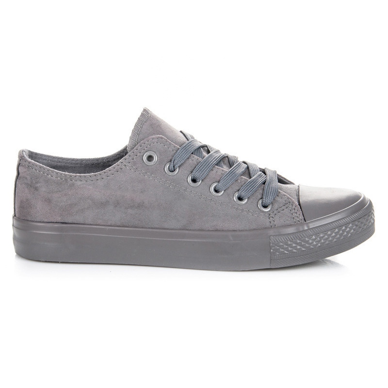 Die Sneaker zeichnen sich durch eine runde Spitze aus, die ihnen einen klassischen Look verleiht, und durch ihre universelle graue Farbe passen sie perfekt zu verschiedenen Stilen – sowohl lässig als auch etwas eleganter. Die Absatzhöhe von 3 cm sorgt für ausreichend Stabilität und Tragekomfort den ganzen Tag.