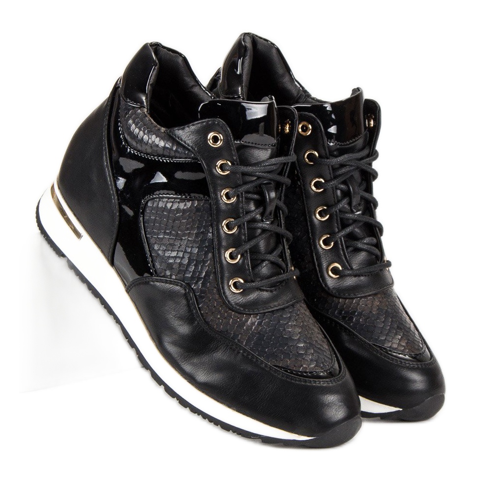 Hohe Sneaker zeichnen sich durch eine runde Spitze aus, die ihnen einen universellen Charakter verleiht, der zu vielen Stilen passt – sowohl lässig als auch eleganter. Durch die schwarze Farbe sind sie äußerst universell und leicht mit anderen Kleidungsstücken kombinierbar.