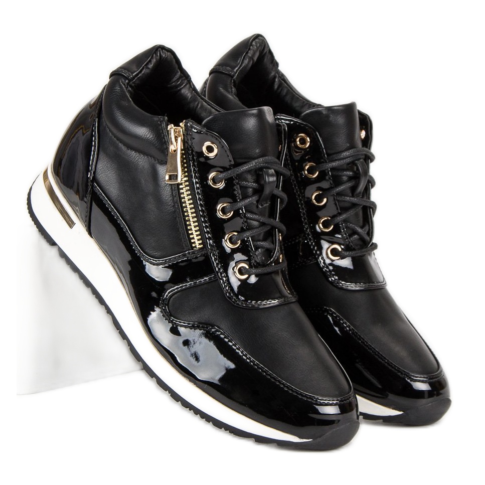 Entdecken Sie einzigartigen Stil und Komfort mit den schwarzen J. Star-Sneakern, die mit einer Kombination aus mattem und lackiertem Faux-Wildleder begeistern. Diese Schnürsneaker sind eine ideale Wahl für Frauen, die Wert auf modisches Aussehen und Komfort legen. Dank des dekorativen Reißverschlusses und der dicken, weißen Sohle heben Sie sich jeden Tag von anderen ab.