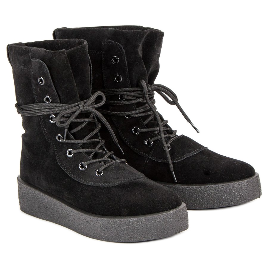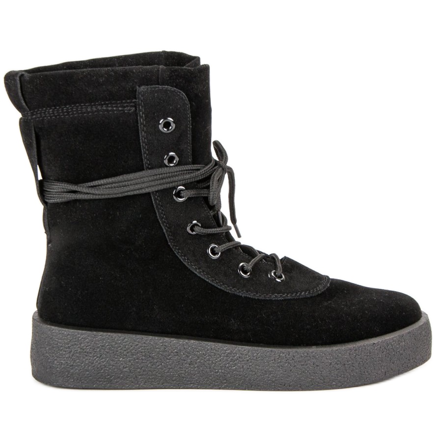 Schwarze Schnürstiefeletten sind die perfekte Wahl für Frauen, die in der kommenden Herbst- und Wintersaison Komfort und Stil suchen. Aus hochwertigem ökologischem Wildleder gefertigt, vereinen diese Freizeitschuhe Eleganz mit Funktionalität. Der versteifte Absatz und die glatte Gummisohle sorgen für Stabilität und Tragekomfort im Alltag.