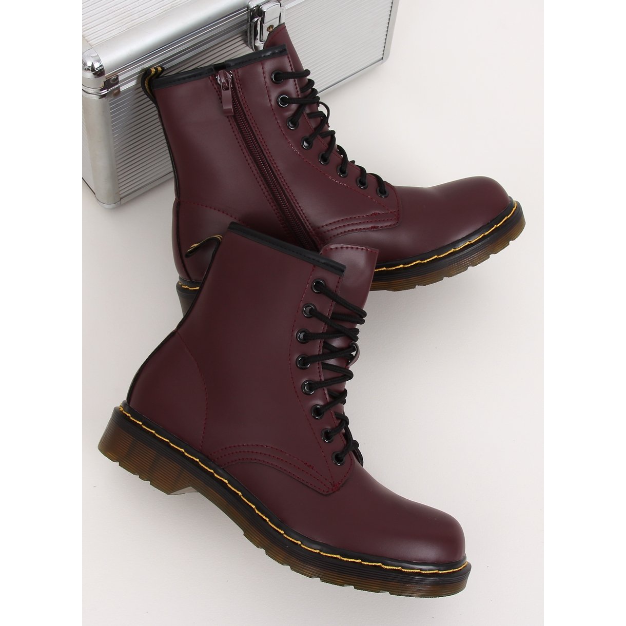 Entdecken Sie außergewöhnlichen Stil und Komfort dank der Schnürstiefel NC1019 Wine Red. Diese flachen Damenschuhe sind ein echtes Must-Have in jeder Garderobe. Ihr ikonischer Schnitt erfreut sich seit vielen Saisons immer größerer Beliebtheit und die eindrucksvollen Nähte entlang der Sohle harmonieren perfekt mit der tiefen, burgunderroten Farbe der Schuhe.