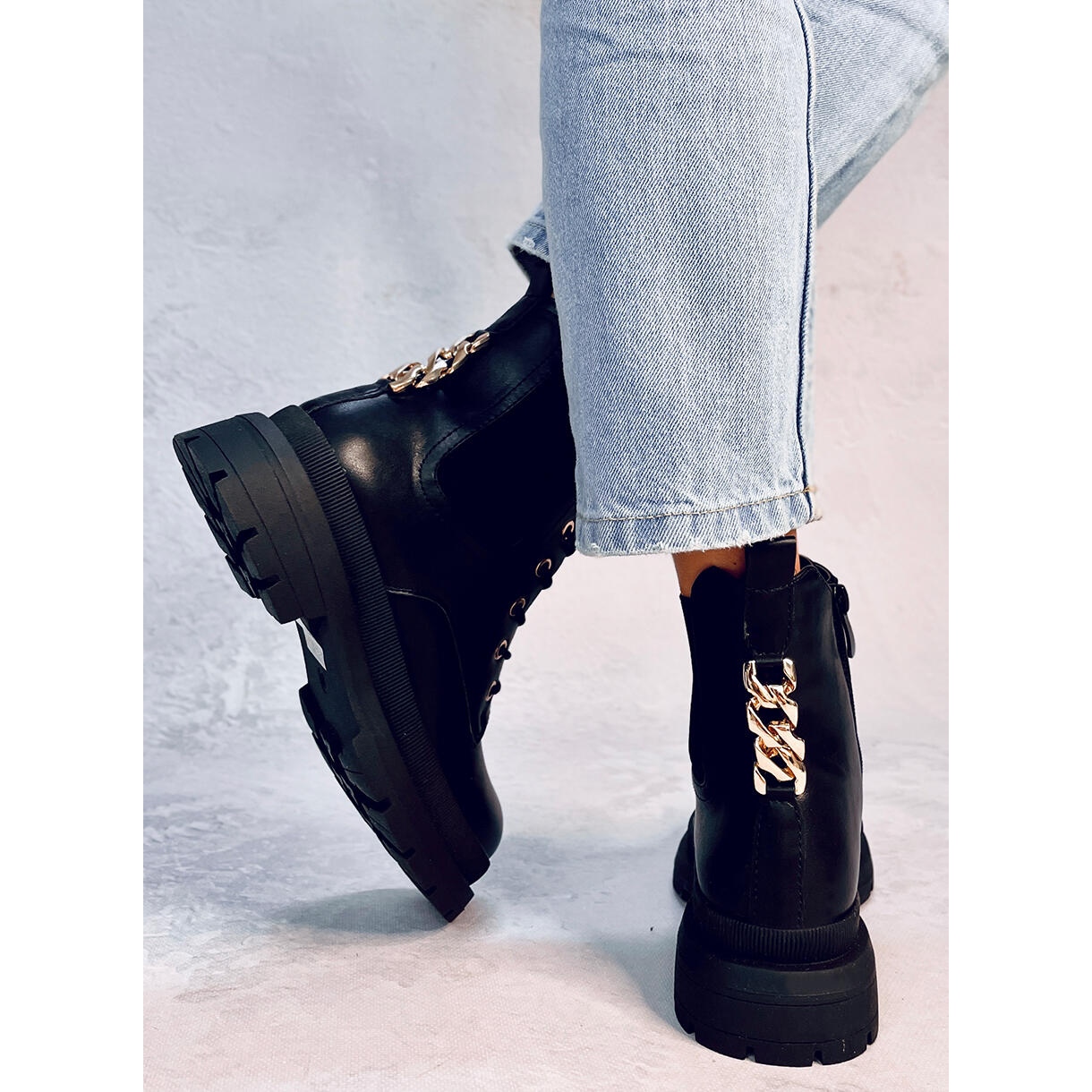 Details: Schnürstiefel mit Clumsy Black Kette schwarz