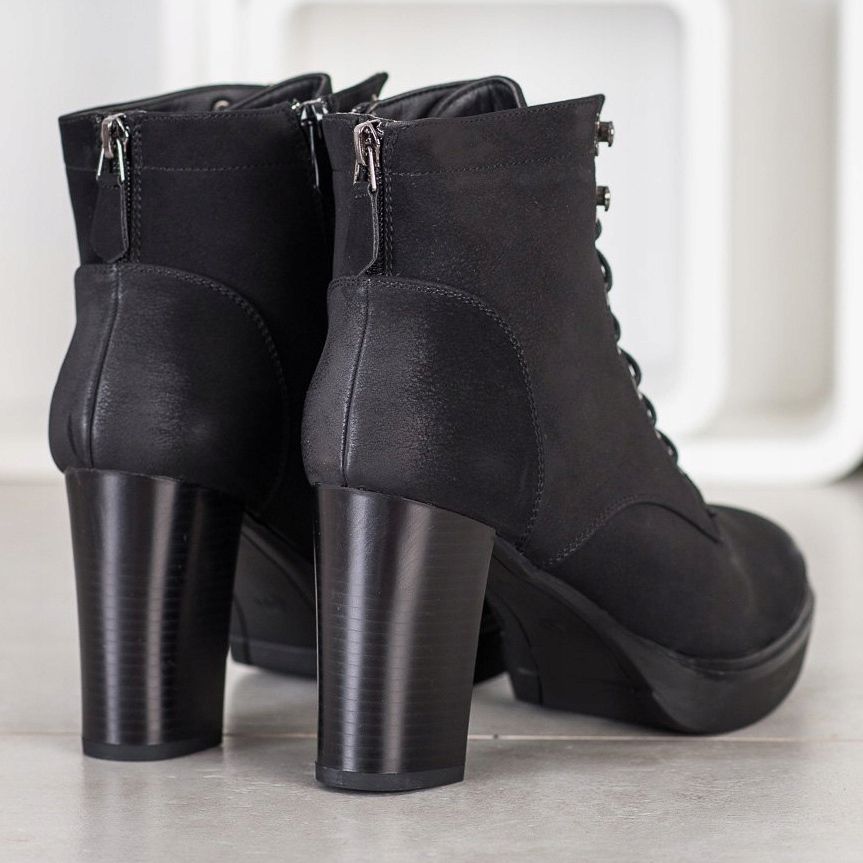 Dabei handelt es sich um schwarze Schnürstiefeletten des Herstellers Sabatina, die eine perfekte Ergänzung zu jedem Herbst- oder Winter-Styling sein werden. Aus hochwertigem ökologischem Leder gefertigt, vereinen diese eleganten Schuhe modisches Design mit Tragekomfort.