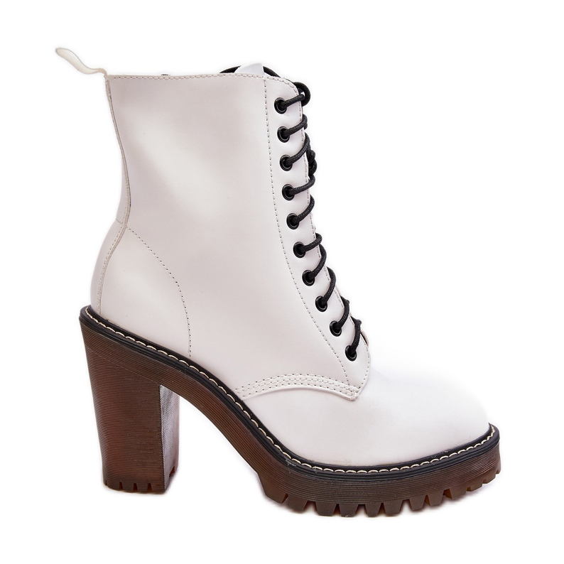 Elegante und komfortable Stiefel sind ein Vorschlag für die Herbst/Winter -Saison für Frauen, die Stil und Komfort schätzen. Hergestellt aus hochwertigem ökologischem Leder in klassischem Weiß mit subtilen schwarzen Akzenten, auf einem stabilen Fersentyp (10 cm). Das Modell greift nach dem Knöchel, ist mit einem praktischen Reißverschluss an der Seite befestigt, und die Schnürung verleiht ihm einen Charakter und erleichtert die Passform.