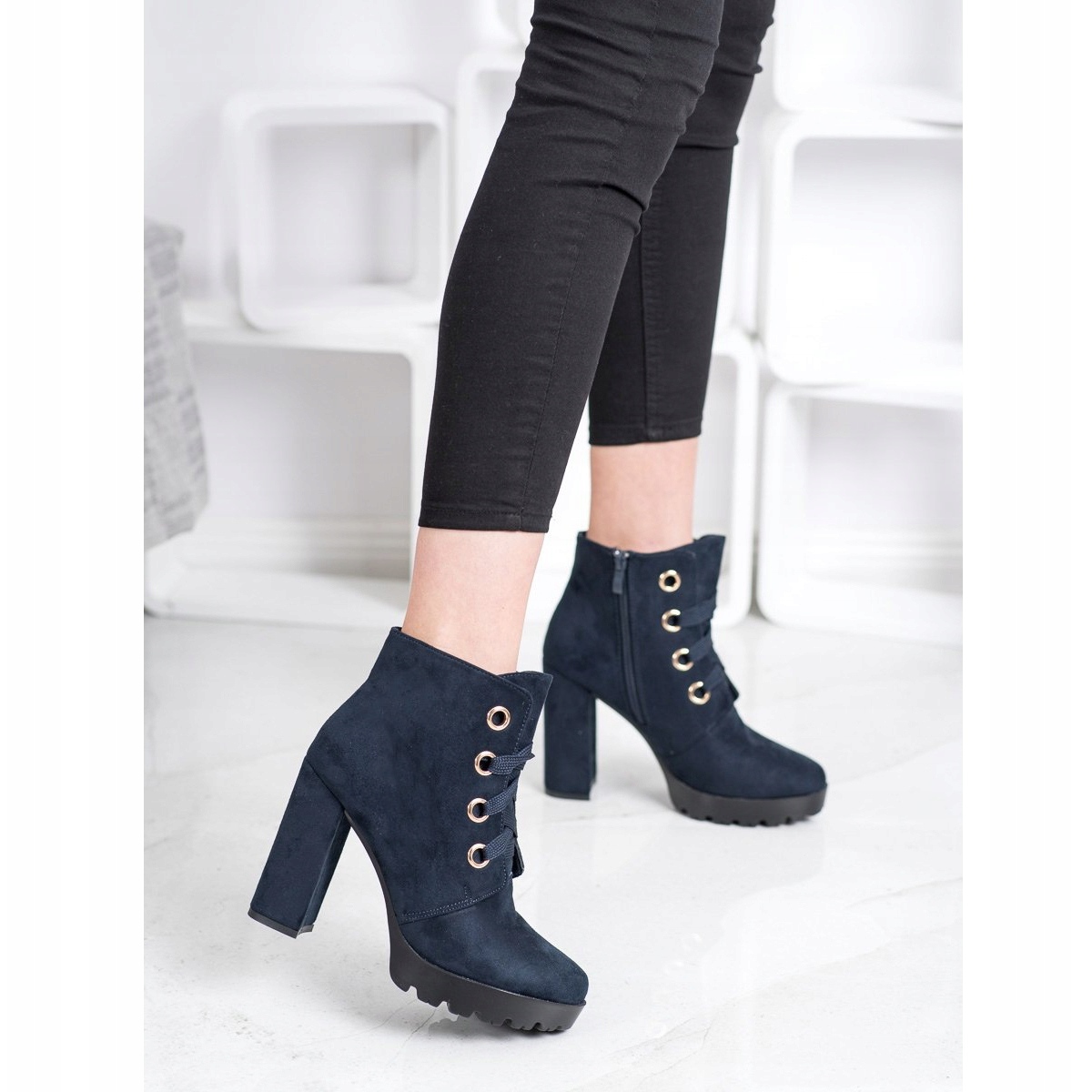 Stiefeletten mit hohen Absätzen vom Hersteller Juliet sind die perfekte Wahl für Frauen, die Mode mit Komfort verbinden möchten. Aus hochwertigem, ökologischem Wildleder in elegantem Marineblau gefertigt, werden diese Schuhe mit Sicherheit alle Blicke auf sich ziehen.