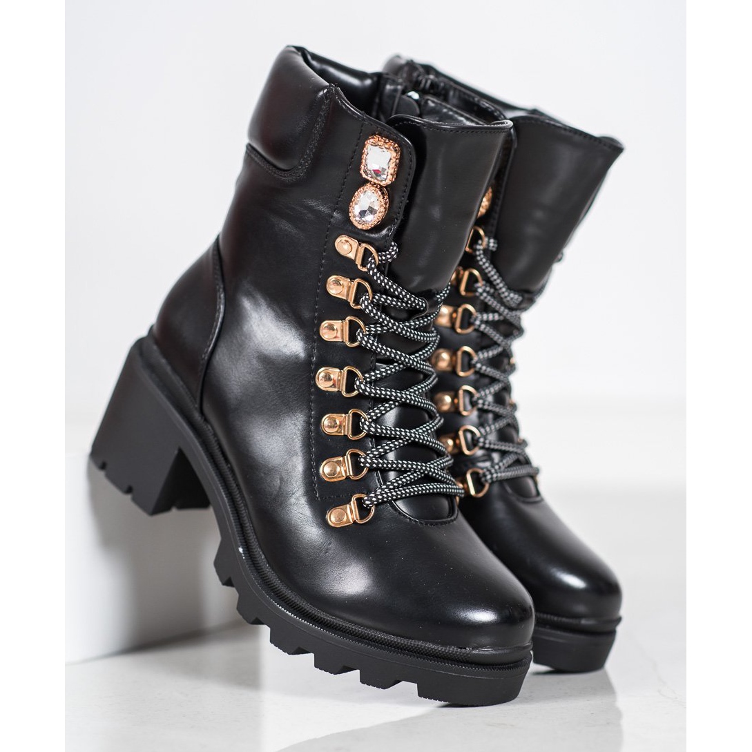 Die Damenstiefeletten von Seastar sind die perfekte Wahl für kalte Herbst- und Wintertage. Sie sind aus hochwertigem ökologischem Leder gefertigt und zeichnen sich durch außergewöhnlichen Stil und Liebe zum Detail aus. Schwarze Schnürschuhe begeistern durch ihr modisches Aussehen, schwarz-weiße Schnürsenkel und dezente Kristalle verleihen ihnen Originalität und Eleganz.